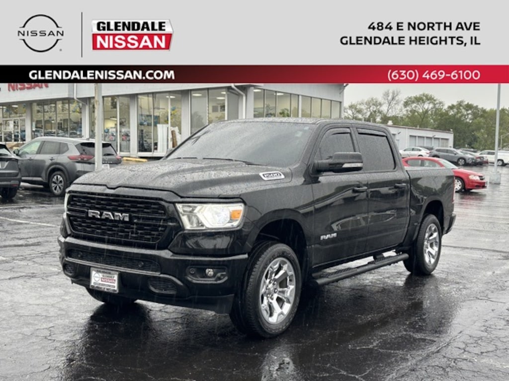 Looking for the best Nissan dealership near Chicago? Glendale Nissan in Glendale Heights, Illinois proudly serves drivers from Naperville, Aurora, Oak Brook, and the greater Chicagoland area with unbeatable prices, exceptional service, and a wide selection of new Nissan vehicles, certified pre-owned Nissans, and quality used cars. At Glendale Nissan, we make car shopping simple with transparent pricing, flexible financing, and one of the largest inventories of popular Nissan models like the Altima, Rogue, Pathfinder, Sentra, and Frontier. Whether youâre interested in a fuel-efficient sedan, a family-friendly SUV, or a rugged truck, our expert sales team will help you find the perfect match. Our state-of-the-art Nissan Service Center offers factory-trained technicians, genuine OEM parts, and convenient online scheduling for oil changes, brake service, tire rotations, and moreâ"keeping your vehicle running like new. Weâre committed to making every visit easy, affordable, and enjoyable. Thatâs why Glendale Nissan is consistently rated one of the top dealerships in DuPage County. 2022 Ram 1500 Big Horn/Lone Star Diamond Black Crystal Pearlcoat *4x4, *Backup Camera, *Bluetooth, 4X4, Push Button Start.